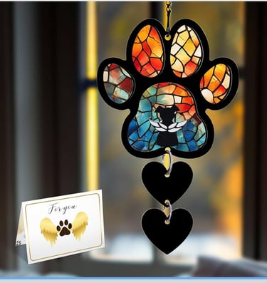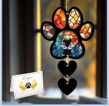 9) Dog Angel Suncatcher: Suncatchers always make a special gift for pet loss because when the sunlight shining through the design is a visual reminder of the love and bond between you and your pet, even though they are no longer with you. This suncatcher includes a chain, hook, waterproof pen, and a sympathy card with the Rainbow Bridge poem, making it a fully prepared loss of dog sympathy gift or dog passing away gift.