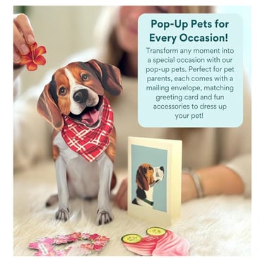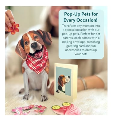 7) Pop-Up Pet Card by Freshcut Paper Cards: Measuring 10", this 3D pop-up card is sure to bring a smile to a pet owner who just lost their pet. There are 13 breeds available, and each comes with accessory sheets to decorate the dogs for fun...think paper dolls. Perfect for sending to a friend or family member who could use a pick-me-up after losing a special pet, or any occasion.